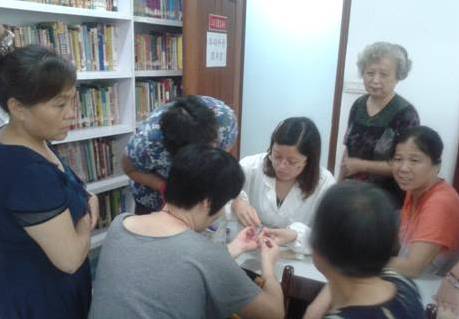 7月14日上午,宝丰街祥和社区科普站特邀市普爱医院内分泌专科的医师们来社区进行糖尿病的知识讲座、免费测血糖和发放糖尿病宣传手册。