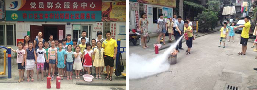 为做好宝丰街站邻园社区的安全工作,社区于7月10日上午,组织社区未成年人、家长、居民进行消防应急演练,邀请了防火中心张老师做现场指导讲解,此次消防演练活动内容包括模拟火情、讲解灭火器的使用等,社区居民及青少年亲自使用社区提供的灭火器现场灭火。大家积极热情的参与使本次活动取得了圆满的成功,达到了预期的效果。