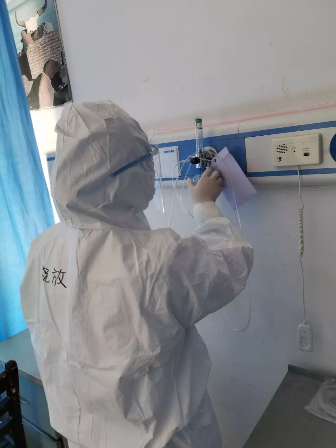 抗疫一线工作已有半个多月,虽是直接接触感染患者,说实话,我们也怕,但专业知识让我们镇定。每天上班,我们会提前去穿好厚厚的防护衣,仔细检查、小心谨慎,做好完善的防护工作,降低感染几率。然后,开始一天的工作:打针、输液、吸氧、搬运氧气瓶、上无创呼吸机、换呼吸机水、静脉采血、动脉采血……很庆幸,以往扎实的工作经验让我们在这场疫情防控中得心应手。