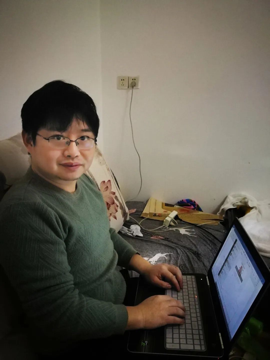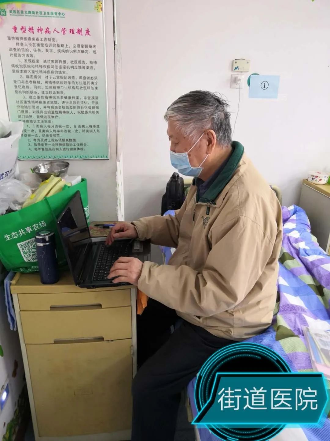 年近8旬的评委袁伯伟老师在医院里参加评审