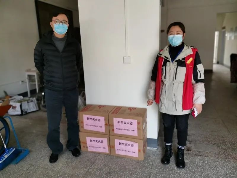 3月7日上午,党组书记、副主席陈光勇,党组成员、副主席张若光一行为青山区钢都花园122社区、白玉山街北湖社区送去新型环保水基型灭火器13箱312具。