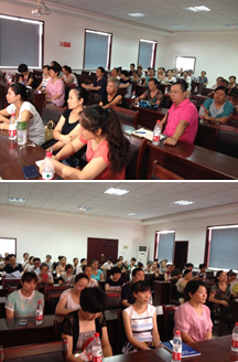 高温酷暑挡不住家长渴望知识、追求成功的脚步,只见闻讯而来的家长挤满了家长学校。报告会正式开始,王老师用图文并茂的PPT、古今中外的经典教育事例、贴近生活的具体教案,深入浅出地讲述了“如何培养孩子的阅读兴趣?如何培养孩子的阅读习惯?如何指导孩子阅读?”等方面的家庭教育知识,让家长明白“阅读是一种终身教育的好方法”的道理和具体操作方法,家长们听得津津有味,很多家长还认真做笔记。在随后的互动环节中,许多家长纷纷举手,争先恐后地向王老师提问求教,王老师热情地答疑解惑。