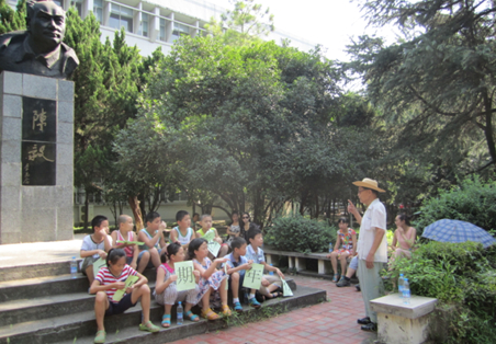 2014年8月1日上午9:00,首义路街千家街社区开展八一·青少年传统革命教育活动。活动特别邀请社区老革命郭万麟与社区12名青少年一起踏着热浪步行前往中南财经政法大学寻找革命先辈陈毅纪念碑。