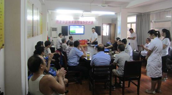 为进一步加深人们对糖尿病危害的认识,做到早发现、早诊断、早预防、早治疗,9月10号,硚口区汉中街兴隆社区特别邀请东方阳光医院内分泌科的刘主任为社区的居民进行了一场声动的“糖尿病防治知识”讲座。社区会议室内坐满了前来听糖尿病知识讲座的老年朋友。刘主任以通俗易懂的语言为老年朋友系统讲解了糖尿病对人民身体的危害、糖尿病与饮食习惯、生活方式等,让他们了解到糖尿病是个可以防治的并学会养成良好的饮食习惯和生活方式,可以控制病情的发展,做好自我监测,可以随时调整治疗方案。随后详细地讲解了糖尿病的预防对策、如何合理的饮食、科学的健身、正确的用药,还讲解了很多人对糖尿病的一些认识误区,同时刘主任向居民派发了糖尿病知识宣传材料。