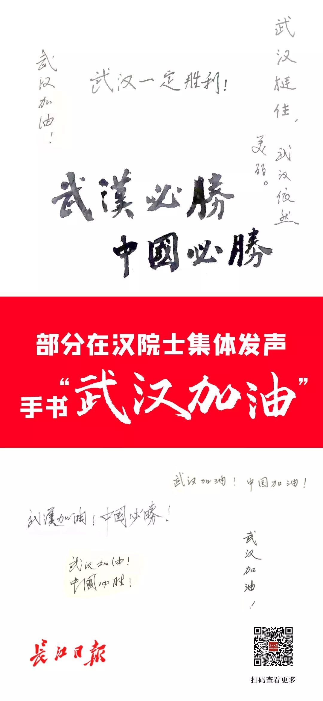 “武汉胜则湖北胜,湖北胜则全国胜”——为贯彻习近平总书记讲话精神、科学打赢抗疫斗争,2月10日,联合在汉的9名院士集体发声,为武汉加油!这9位在汉院士分别是李德仁(中国工程院,中国科学院院士,主席)、殷鸿福、朱作言、樊明武、叶朝辉、邓子新、张俐娜、陈孝平、谢先启。