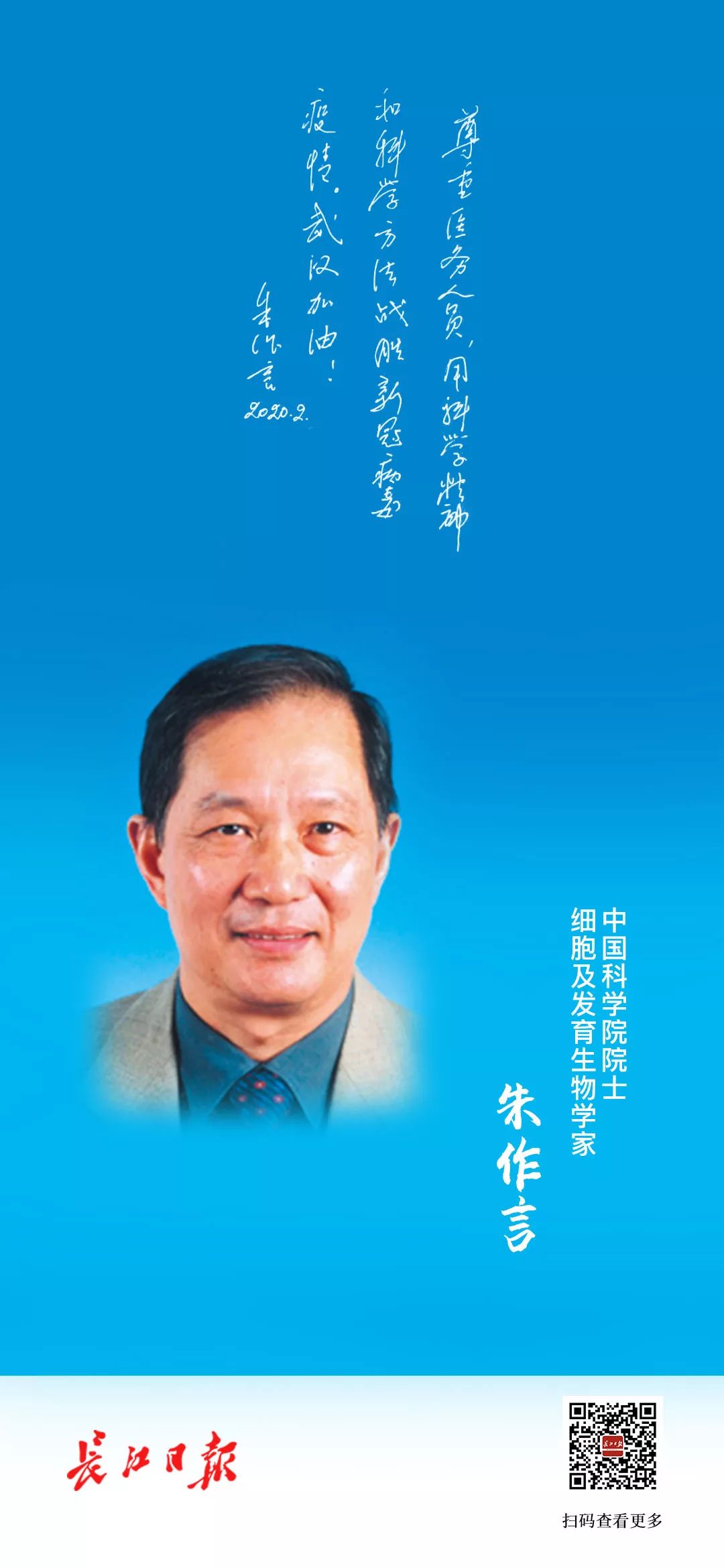 尊重医务人员,用科学精神和科学方法战胜新冠病毒疫情。武汉加油!——朱作言