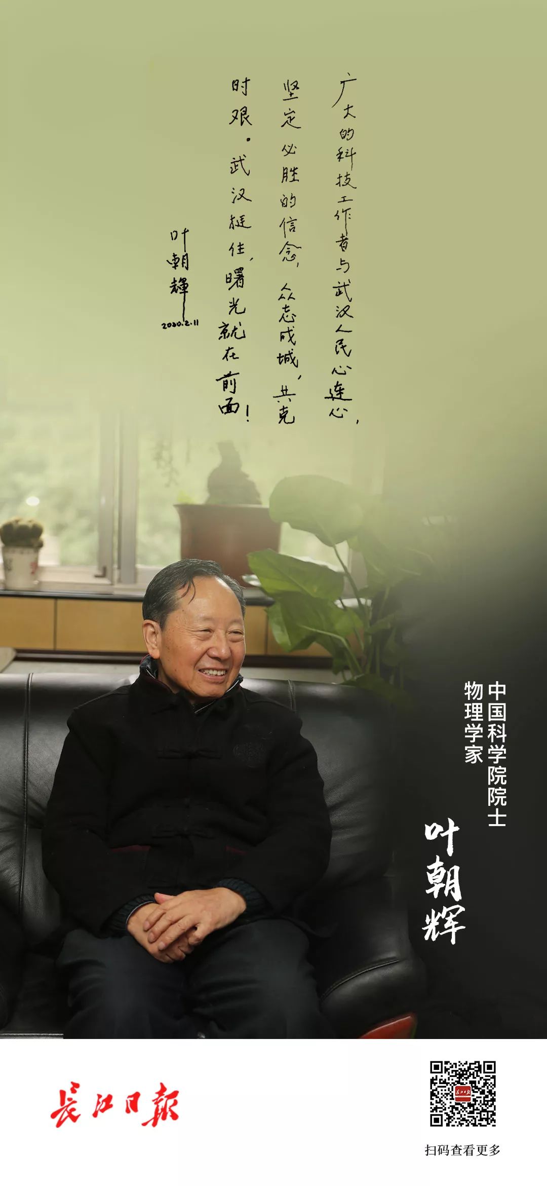 广大的科技工作者与武汉人民心连心,坚定必胜的信念,众志成城,共克时艰。武汉挺住,曙光就在前面!——叶朝辉