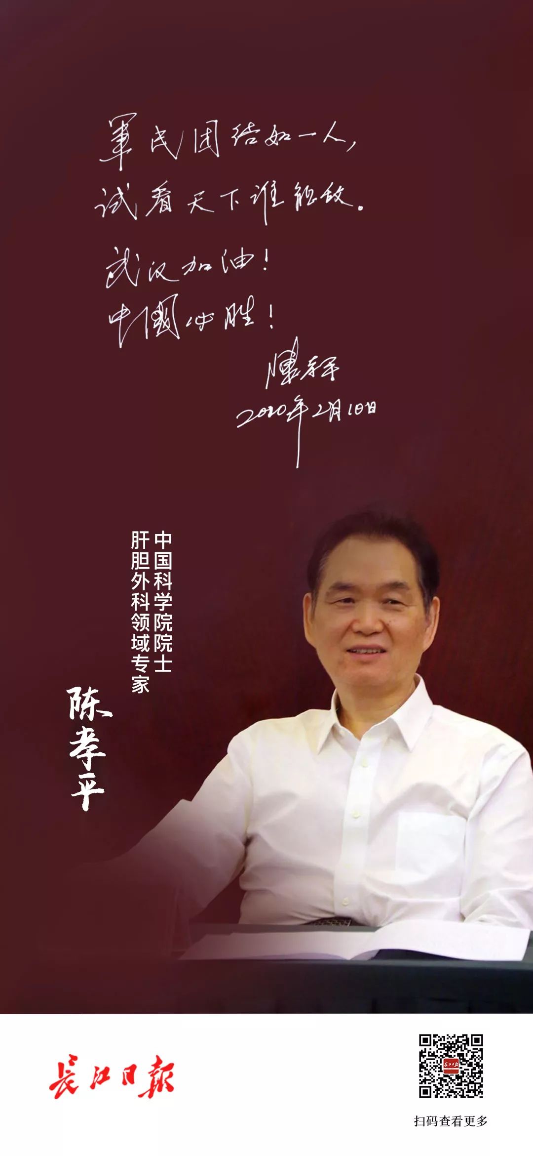 军民团结如一人,试看天下谁能敌。武汉加油!中国必胜!——陈孝平