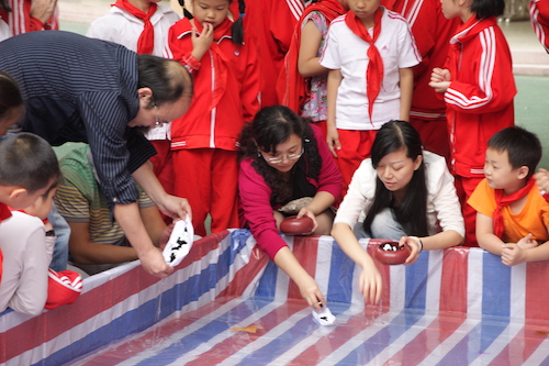 “要把节日还给孩子,让他们在自己的节日里自己做主。”李军认为,“唤醒自主意识,固化自主行为,发展自主能力”很重要。在每年一度的校园科技节里,学校特别注重引导学生参与活动的设计,围绕活动主题,活动内容,活动形式等,广泛征求学生的意见。在具体的筹备中,引导学生将活动的思想性、知识性、趣味性和创新性有机结合。沈阳路小学的绿色科技节走进了每个学生的心里,成为他们自主参与、个性飞扬的大舞台,也成为了学校自主教育的一张亮丽的名片。
