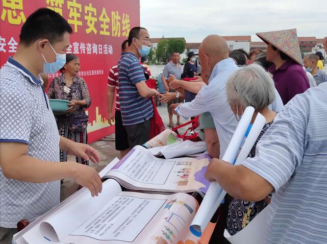 6月16日,新洲区徐古街在徐古红色广场开展第19个全国“安全生产月”活动,以生活常识为宣传主题,包括疫情防控、垃圾分类、用电作业、家用燃气、水灾预防、逃生应急、生产作业等内容,加强群众的安全防范意识。
