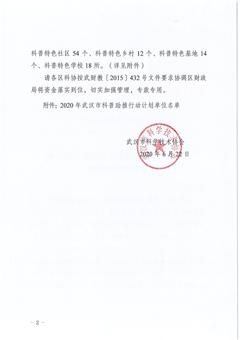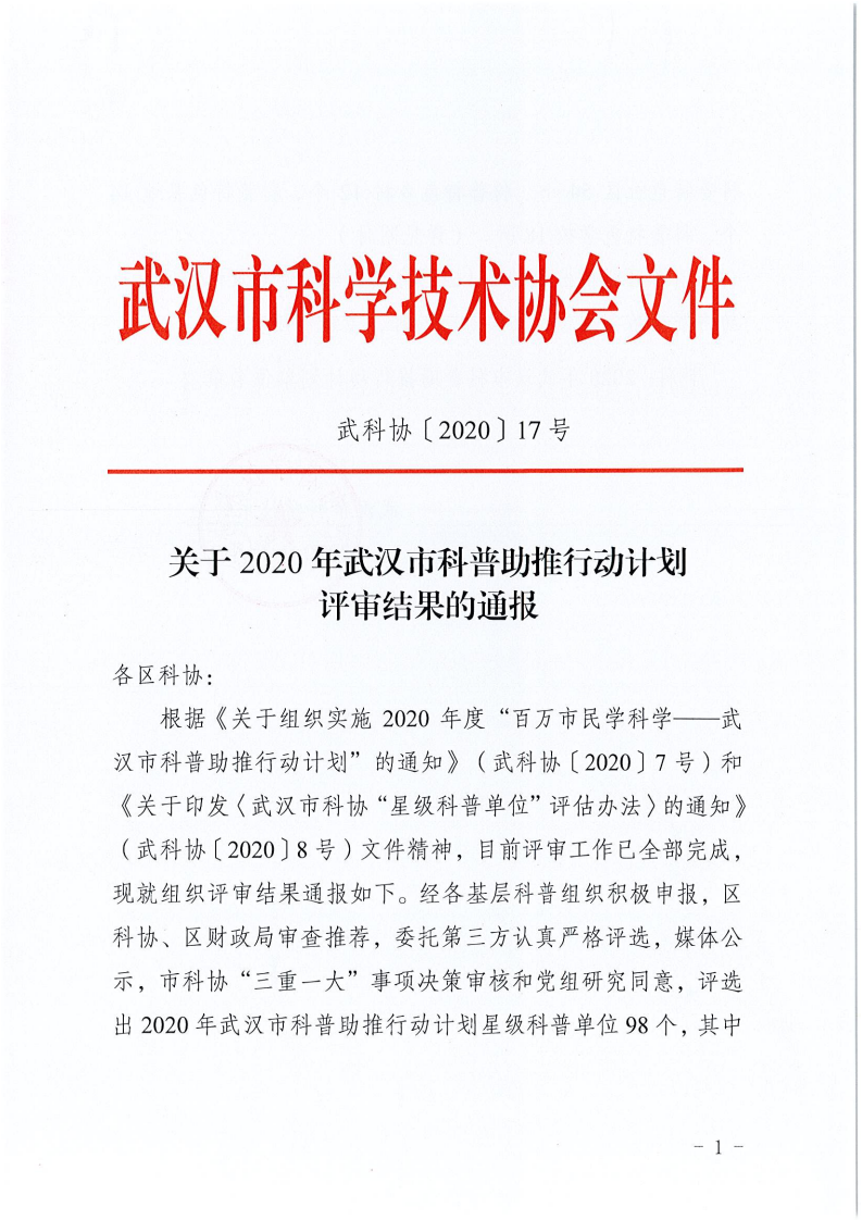 关于2020年武汉市科普助推行动计划评审结果的通报