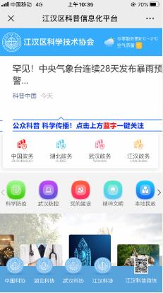 线上,每天通过微信群、微信公众号推送有针对性的科普防疫信息,组织各街科普志愿者广泛宣传,目前已累计推送科普防疫信息800余篇,同时借助科普信息化平台,每天推送防疫最新咨询和科普知识,打造“疫情不解除,科普不掉线”品牌。