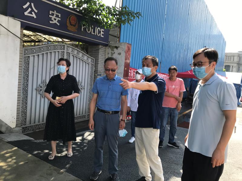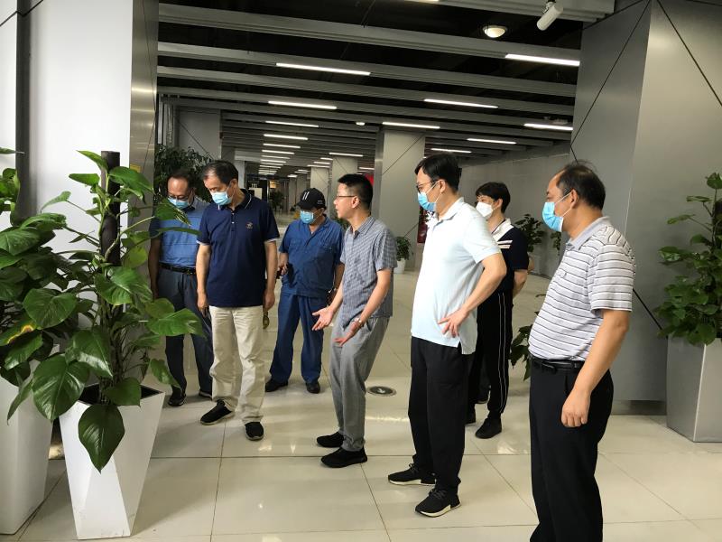 市科协党组成员、副主席张若光(前排右一),市纪委驻科技局纪检组副组长余正祥(前排右二)到武汉科技馆就防汛工作进行检查,武汉科技馆馆长、党委书记刘青(前排左一)陪同