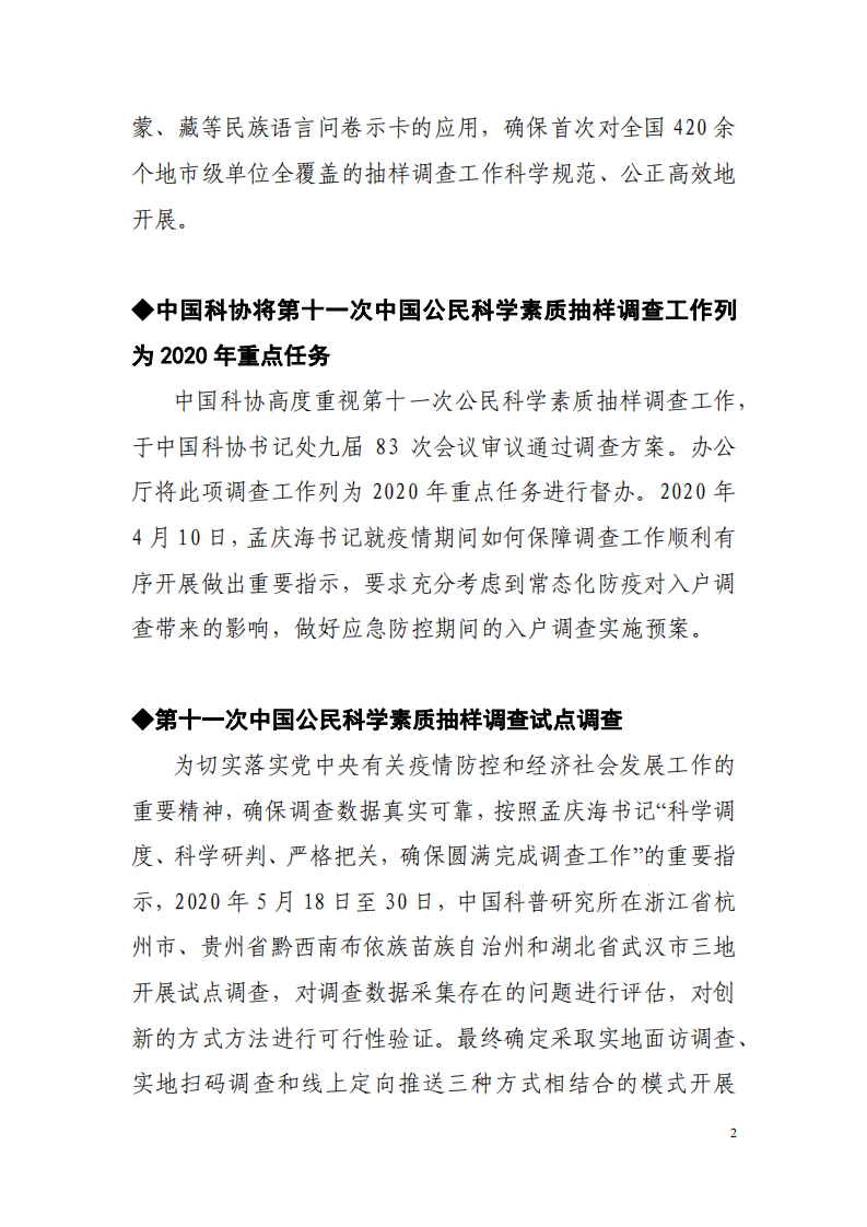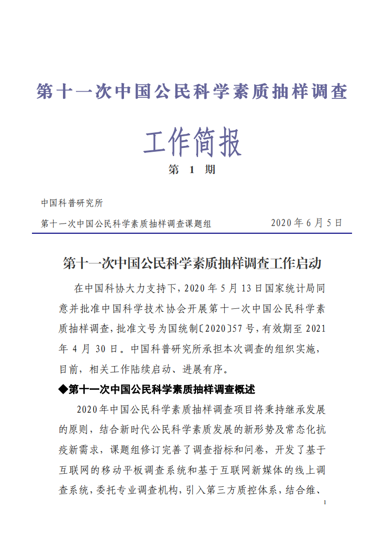 [2020年第1期]第十一次中国公民科学素质抽样调查工作简报