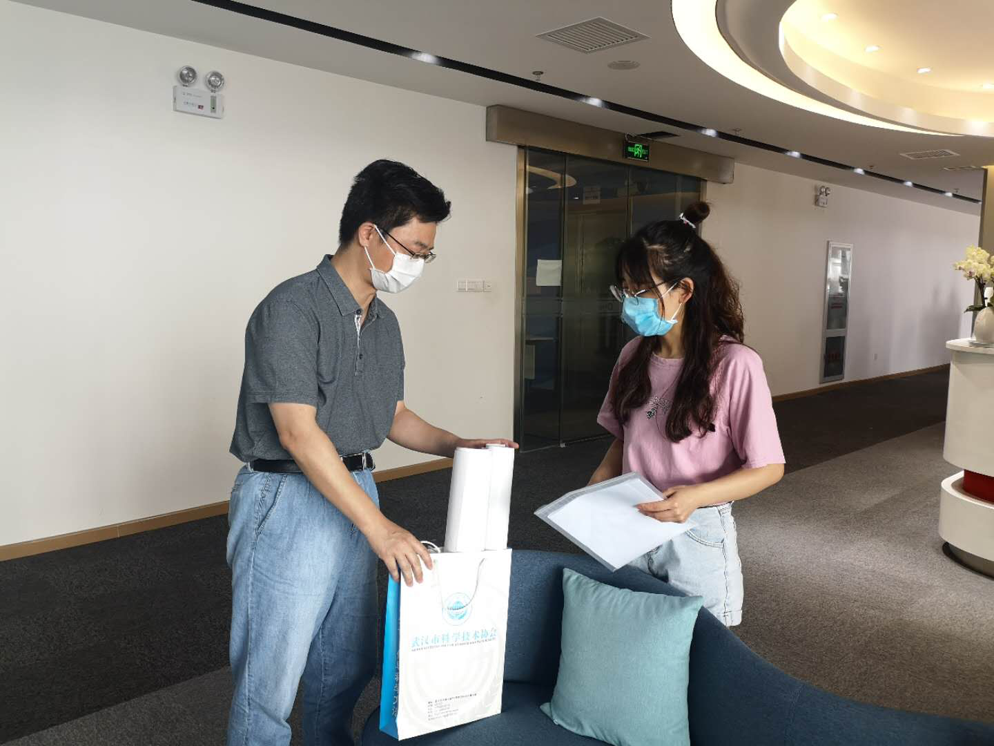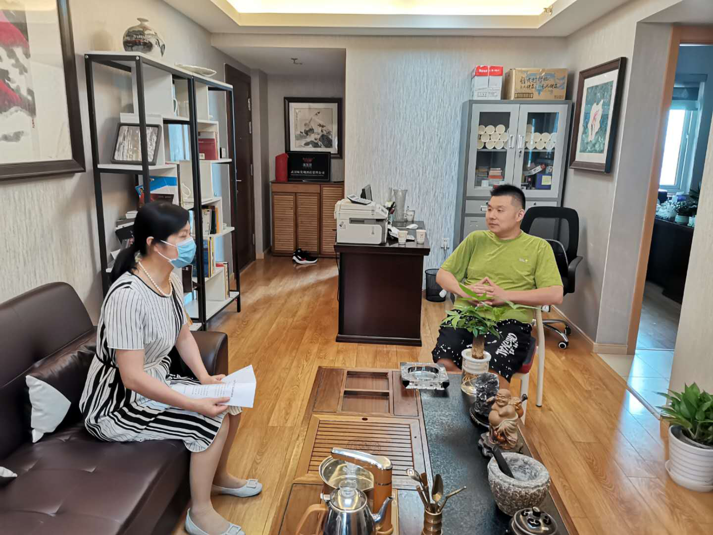 图为武汉科技馆党委书记、馆长刘青(左一)走访服务企业