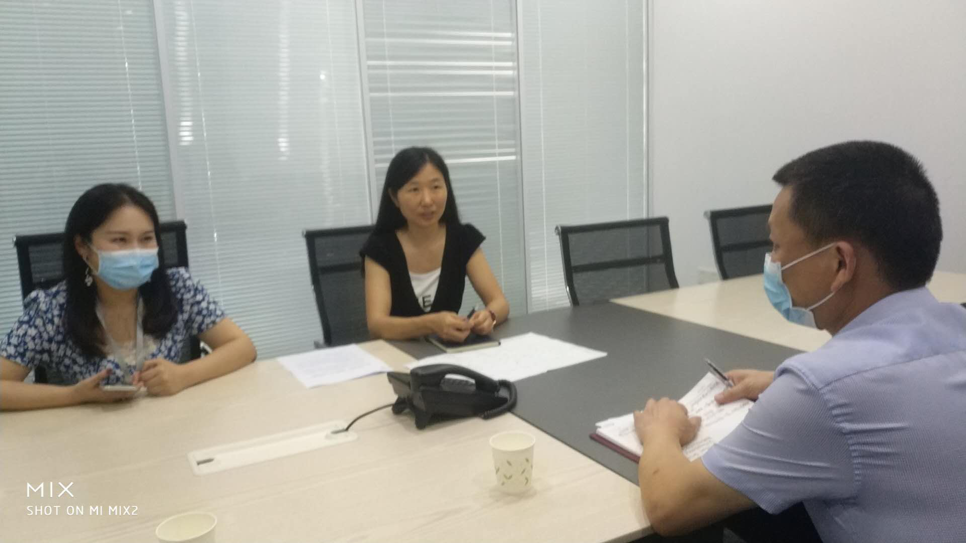 图为市科协直属机关党委专职副书记马华(左一)走访服务企业