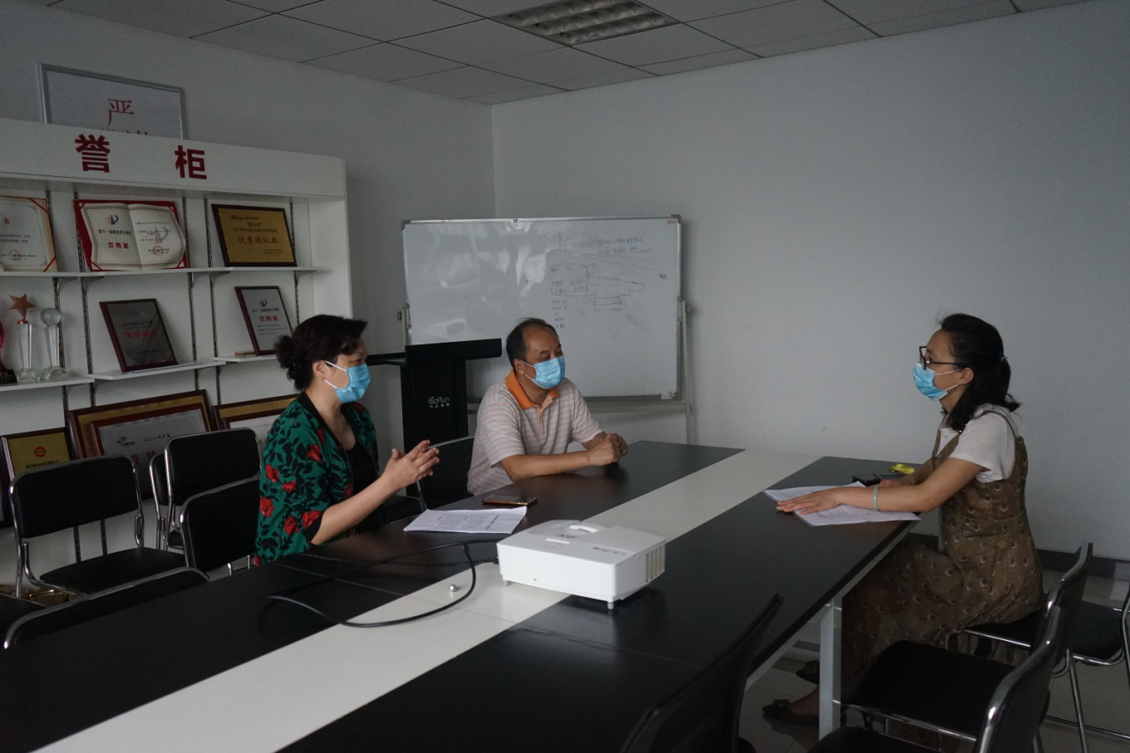 图为市科协组人部副部长严浩(左一)走访服务企业