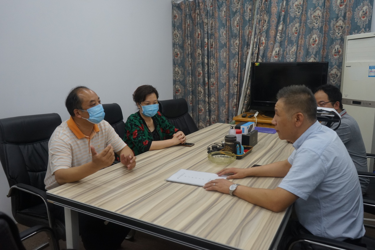 图为市科协企事业部部长刘飞(右一)走访服务企业