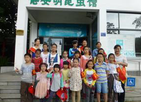 孩子们兴致很浓,热情很高,组织有序。他们跟随着解说员,参观了昆虫馆和蝴蝶馆两个展馆。在昆虫馆内,孩子们见到了世界上最大的蚊子、最大的金龟子、蝴蝶的幼虫等各类珍惜观赏昆虫一千余种。通过解说员的讲解,孩子们知道了昆虫一般具有的特征,知道了昆虫的分布,也明白了昆虫在自然界中的存在价值。在蝴蝶馆内,孩子们看到了各种濒危蝴蝶。工作人员给大家讲解了蝴蝶的形态特征、种类、生活习性、发育过程以及蝴蝶的饲养方法等知识,并耐心回答学生们提出的问题,通过与讲解员的互动交流,加深了孩子们对蝴蝶相关知识的理解。