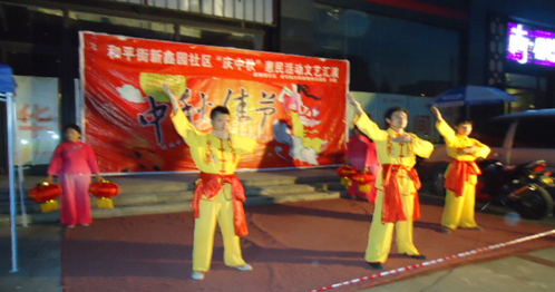 为了丰富居民文化生活,提高居民生活质量,在中秋节来临之际,9月3日,和平街新鑫园社区特邀小白鸽艺术团,举办“庆中秋”惠民活动文艺汇演,居民群众积极响应,并发放计生宣传资料及创卫小贴士达200余份,200余人观看节目。