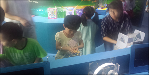 首先小朋友们兴高采烈地来到展示空间,他们一边观赏各种壁画一边认真听着科普工作人员讲有关龙王管雨水的中国神话故事和红霞的历史,还观看了各种太阳能玩具车、玩具船还有抽水机、水漩涡等科技展品,最让小朋友们感兴趣的是互动空间,当他们看到辉光球、雅各布天梯、气流浮球、声驻波、无弦琴、悬磁浮地球等产生奇妙的现象时都停住了脚步,都争先恐后地去尝试体会科技带来的美妙。