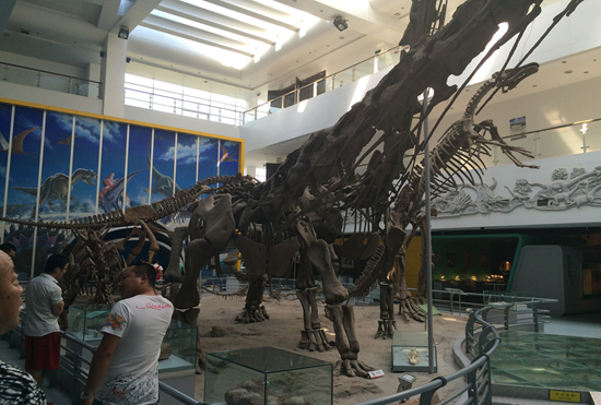 一进入馆内,大家首先被地球46亿年沧桑巨变的宏伟画卷和地球生命38亿年进化历史进程所震撼,最后大家徜徉于精美绝伦的珠宝玉石世界和五光十色的矿物岩石天地之间并观看了恐龙化石珍品――黑龙江满州龙、鱼龙化石之王――梁氏关岭鱼龙、界海龙之王――黄果树安顺龙、如花似画的奇观――海百合化石等化石标本以及辉锑矿晶簇、孔雀石、争奇斗艳的名贵宝石――五皇一后等矿物和宝玉石标本。