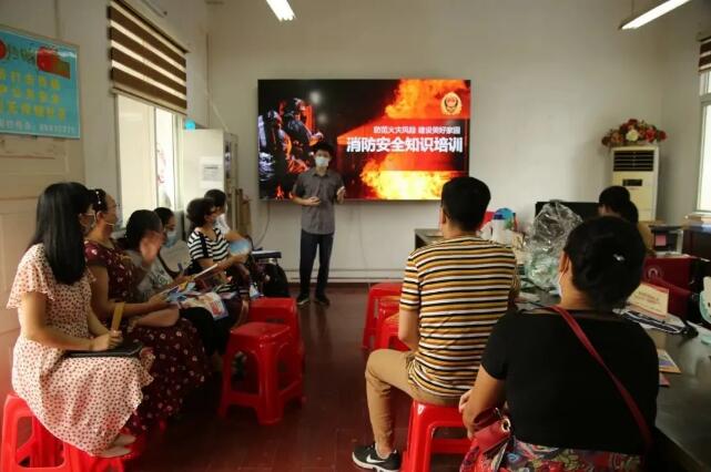 培训过程中,宣讲师以多媒体课件、模拟火灾现场的小视频及近年来发生的火灾真实案例,深度讲解了火灾的危害性和日常预防火灾的重要性。针对夏季如何预防火灾、“四清四关”的重要性、如何正确的用火用电用气、电气火灾的危害性、常见的灭火器具的使用方法、如何正确的自救逃生等消防知识进行了详细的讲解。送出了消防宣传手册、喷壶等小礼品。