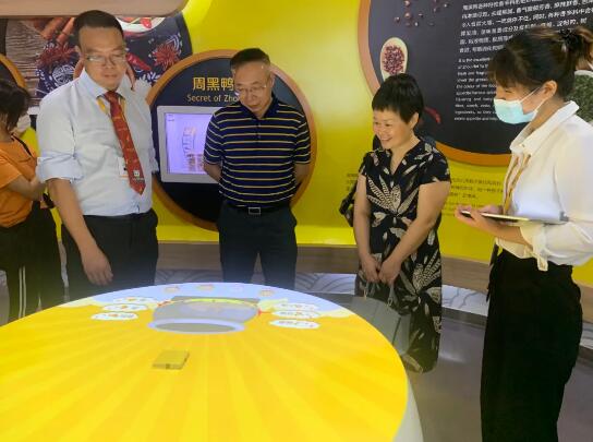 随后,调研组一组前往走马岭食品工业园湖北周黑鸭科普教育基地调研科普工作。周黑鸭相关负责人周坤向调研组一行介绍了指导周黑鸭一路向前发展的三大精神支柱和发展历程,并带领大家参观了科普展馆。周坤谈到,企业的发展和创新紧密关联,科普工作也至关重要,希望通过科普展馆让更多的人知道周黑鸭、了解周黑鸭、喜爱周黑鸭,使企业的整体形象得到进一步提升。