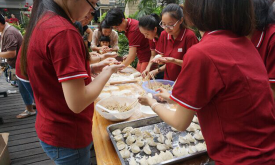 9月27日,社区工作人员搀扶20多名空巢、独居、高龄老人来到活动现场集体过节。大家欢聚一堂,抚今追昔, 寒喧声,欢笑声此起彼伏,幸福的笑容洋溢在每个人的脸上。同时周大福公司的志愿者亲手为老人准备了节日蛋糕和现场包饺子,他们把切好的蛋糕和包好的饺子一一送给老人品尝,还上门给困难老人家庭送去慰问品。