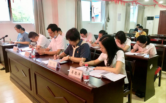 ▲区科协党组成员、副主席梅智云带领党员学习党章