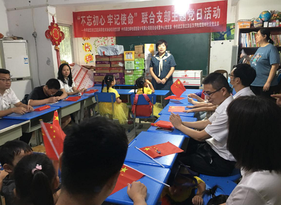 在开展完党性教育后,由联合支部发起的帮扶流动花朵爱心活动也在姑嫂树村流动花朵服务站现场举行。
