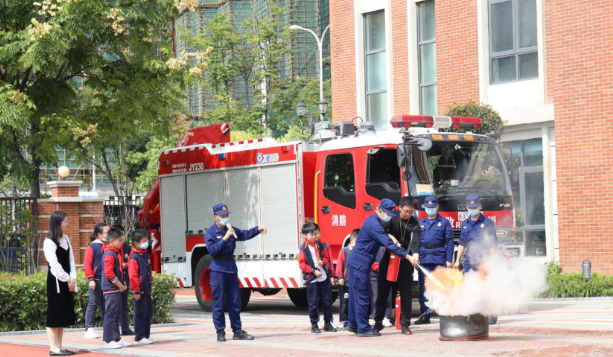 上午10点,呼啸的消防警报突然在安静的校园中响起,各执勤教师迅速奔赴各自点位,学生们迅速低头弯腰、用沾湿的手巾捂住口鼻。仅仅用了5分20秒,全校师生便全部疏散到了足球场。“这是液压剪,它能帮我们破拆各种大铁门,这是防护服,它能抵抗火场的高温……”消防站的官兵们将消防车开进校园,四年级的同学们在体育馆前,现场观摩了消防官兵展示各式消防器材。