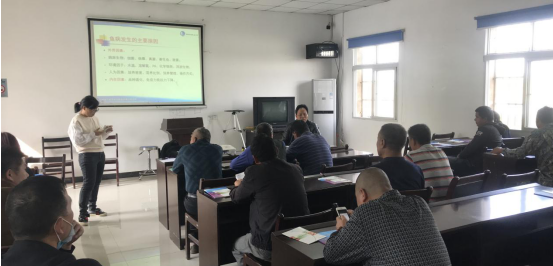 本次活动邀请中国水产科学研究院长江水产研究所鱼类病害研究室二级研究员、博士生导师曾令兵,在良湖垸大队部为20余名农户开展水产养殖病害综合防治与规范用药技术培训。