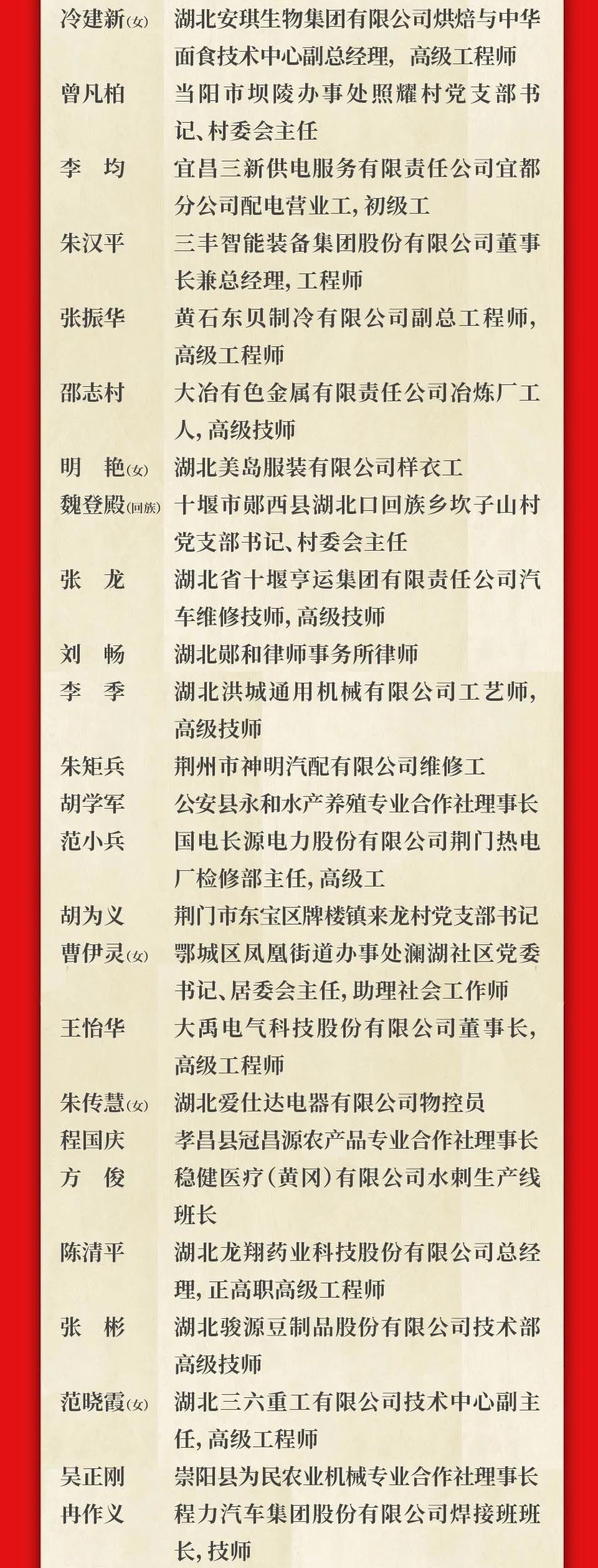 2020年全国劳动模范和先进工作者名单(湖北省)