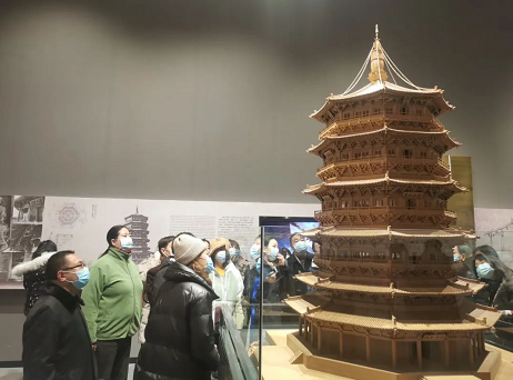 在中国建筑科技馆常设展厅,大家参观了古代厅、荆楚厅、现代厅及未来厅四大展厅。中国7000年前的建筑是什么样?梁思成发现的中国最早木结构建筑在哪里?曾登上央视《国家宝藏》的“样式雷”到底是个什么样的设计?在这里都可以找到答案。通过一个个建筑模型、一件件传统工具、一段段影视资料、一张张图片展示了中国建筑文化的深厚内涵和未来建筑的发展方向。