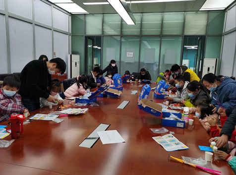 老师细心地向孩子们讲解每个小手工背后蕴含的科学知识:“简易机械手”的杠杆原理,“日地月模型”的天文知识,尽管小朋友们不能完全理解和领悟,但是从他们求知的眼神中足以期待他们投身科学的热情和激情。家长们一直陪伴着孩子,协助他们一起完成,有位小朋友说“能跟爸爸一起做手工,真的太开心啦”!