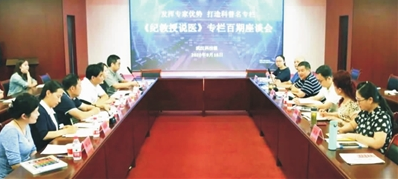 2018年,本报携手纪光伟在本报开设专栏《纪教授说医》,坚持从专家角度,用通俗易懂的语言为市民普及健康知识。现已发表科普文章100期。针对此,专家们围绕“互联网+”时代如何运用融合思维,整合资源,打造健康科普品牌等问题进行了交流探讨。