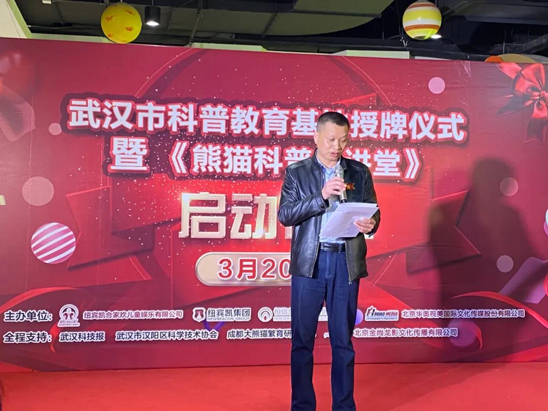 张若光为武汉市科普教育基地授牌。与会嘉宾共同宣布《熊猫科普大讲堂》正式启动。