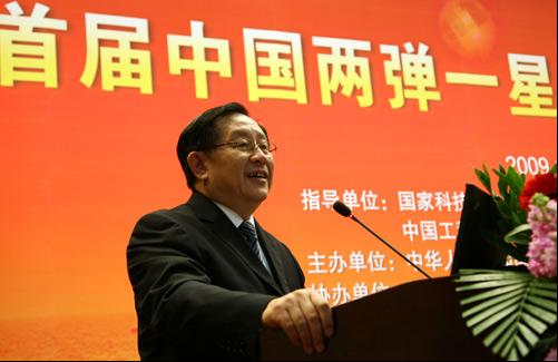 万钢部长在致辞中说,今年是新中国成立六十周年。这六十年,全国人民在中国共产党领导下,历经艰难、卓绝奋斗,取得了举世瞩目的伟大成就,谱写了自强不息的壮丽凯歌。其中,“两弹一星”就是这六十年中最为突出的一项成就,是六十年中最为震撼的一个章节。没有“两弹一星”,就没有我们今天的国际地位和民族尊严。
