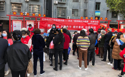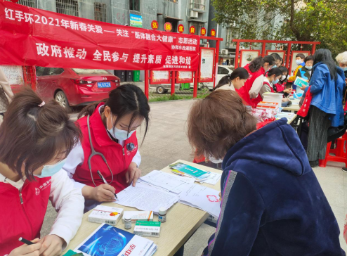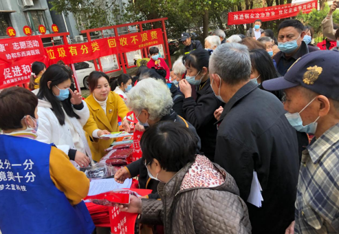 稍后在社区广场进行科普宣传及义诊活动。免费为120余名中老年人测量血压、血糖,为脑血管病患者及高危人群进行详细咨询,对患者自带体检报告给予诊治建议,解答患者提出的脑血管病、心血管病、糖尿病等相关疾病问题。医院“红手环”科技志愿者免费向居民赠送洗洁精、清洁布等清洁卫生用品70余份。区科协志愿者有针对性的现场为居民发放《身边的科学》、《食品安全》、《社区安全知识读本》、《四季养生》、《社区青少年》、《反邪教宣传折页》等科普宣传资料300余册。东西湖区应急管理局现场向居民赠送《市民防震手册》、环保袋、围裙、零钱包等应急科普宣传物资150余份。社区志愿者发放文明城市创建知识宣传页和“武汉因你而荣”环保袋及抽纸,并现场向广大居民普及讲解文明创建应知应会知识,现场活动热列而有序,深受居民欢迎,赢得广大群众的一致好评和点赞。