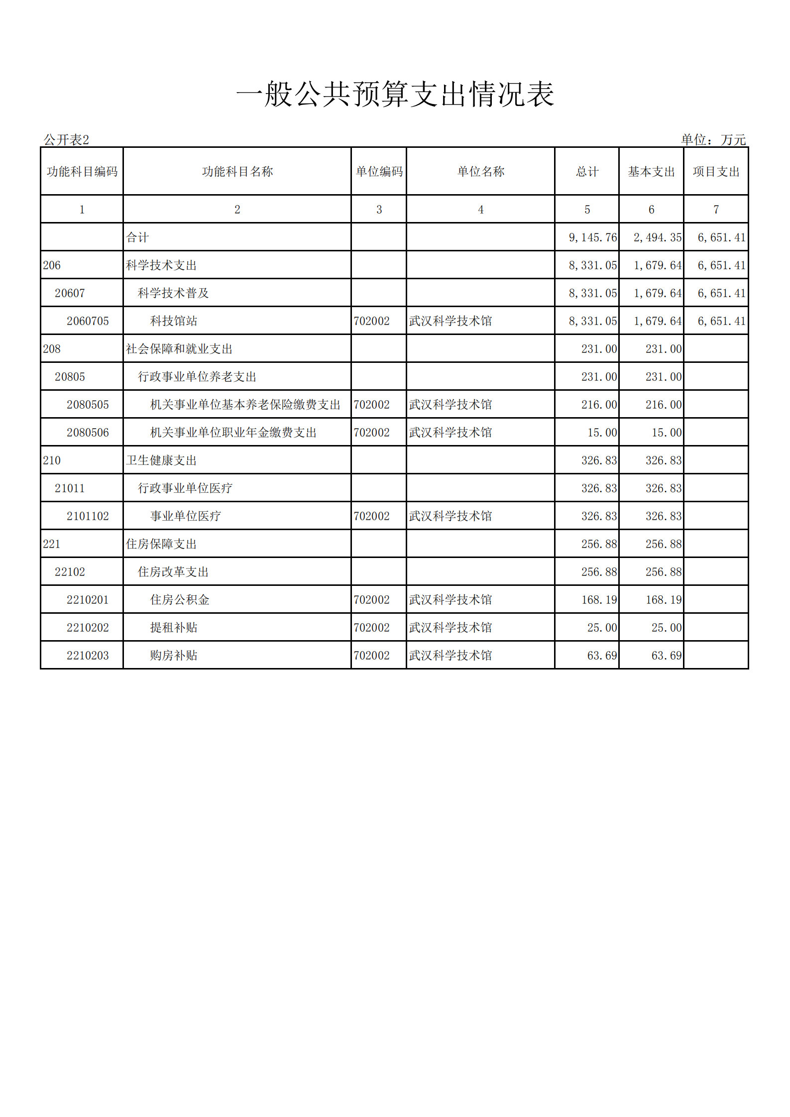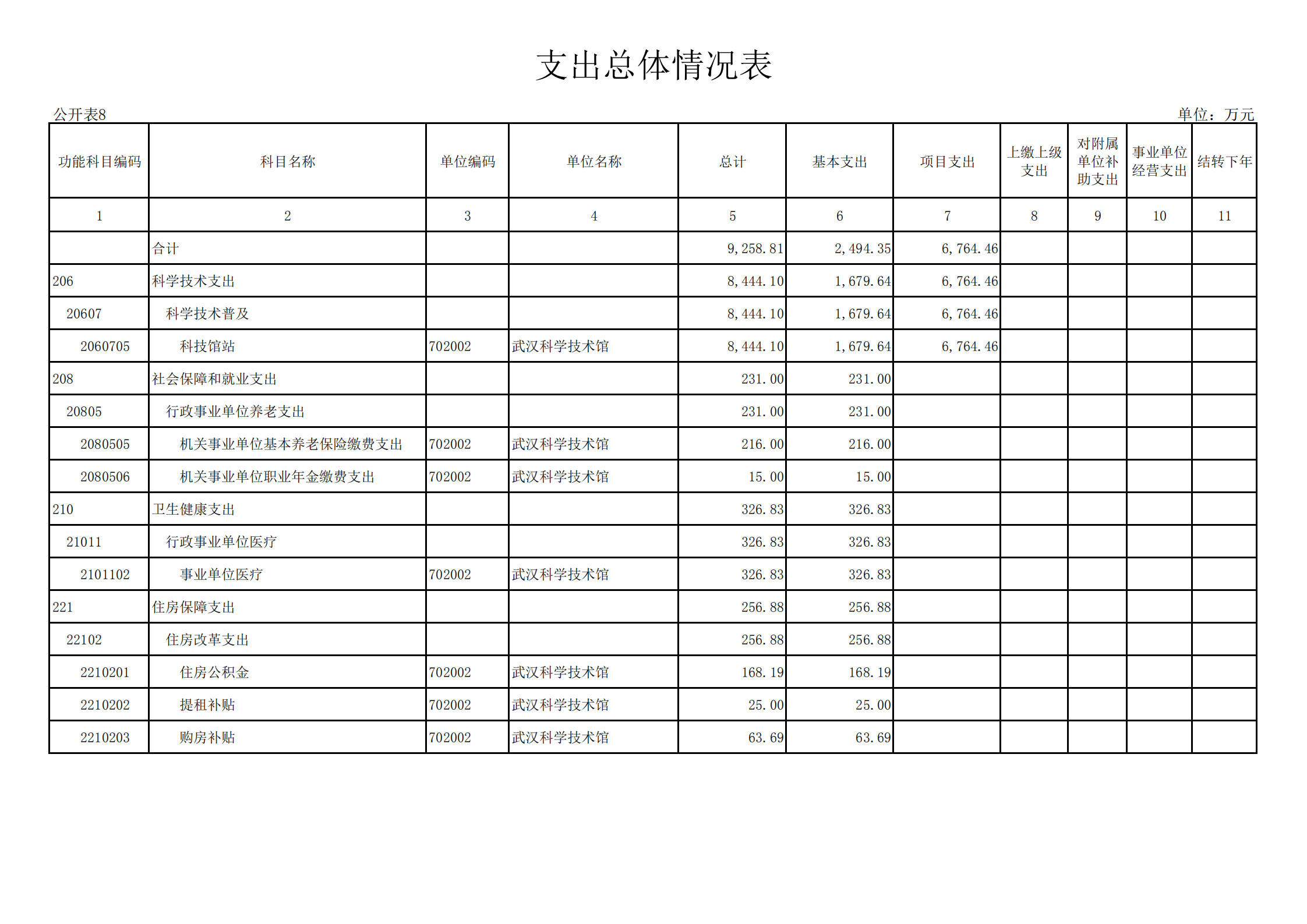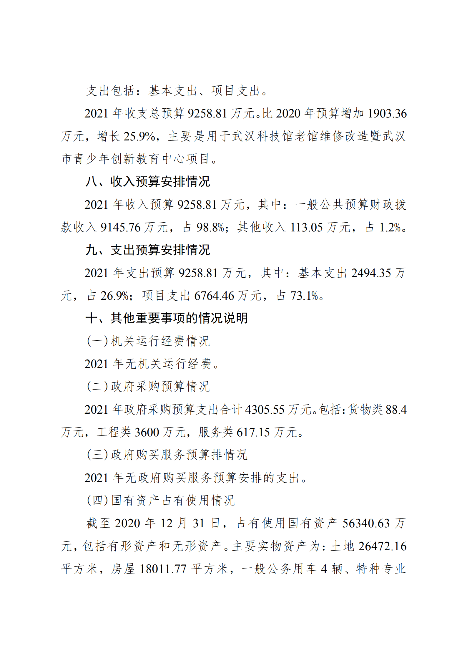 武汉科学技术馆2021年单位预算
