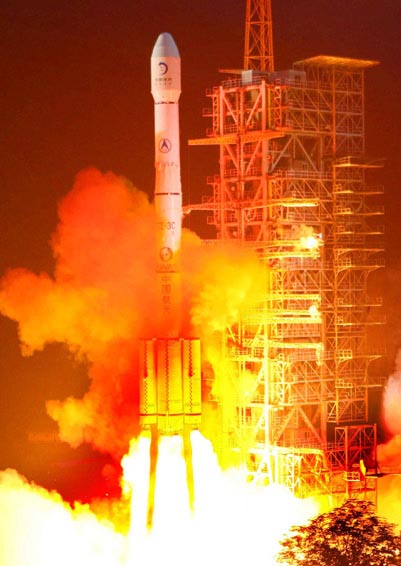 北京时间10月1日18时59分57秒,中国在西昌卫星发射中心用“长征三号丙”运载火箭,将“嫦娥二号”卫星成功送入太空。这标志着中国探月工程二期任务迈出坚实的一步,同时为新中国61周岁生日献上一份厚礼。