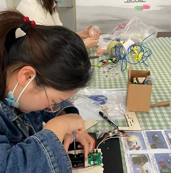 在活动现场,参赛人员制作了庆祝建党100周年的走马灯、自动供水的宠物饮水机、磁悬浮、雨声筒、全息影院、净水器等各种式样的科技制作作品,展现了科技教师们扎实的基本功和良好的业务素质,得到了观摩人员的肯定。