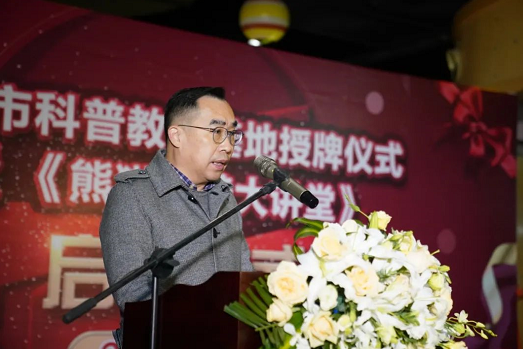 张若光为武汉市科普教育基地授牌。与会嘉宾共同宣布《熊猫科普大讲堂》正式启动。