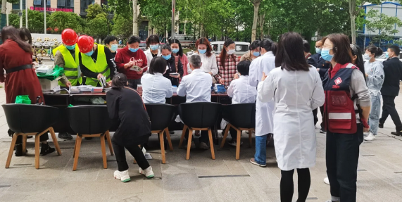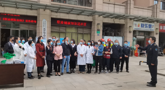 2021年4月25日至5月1日是中国第19个《职业病防治法》宣传周,为深入宣传贯彻《职业病防治法》,切实保障广大劳动者职业健康权益,2021年4月28日下午,海赋社区、江岸区妇幼保健院、江岸区卫生计生执法大队、江岸区卫健局、江岸区医保局、尚邦医康公司、部分企业代表联合开展了职业健康进社区共建科普活动。现场LED屏亮出了2021年的宣传主题:共创健康中国,共享职业健康,同时循环播放了宣传用语。