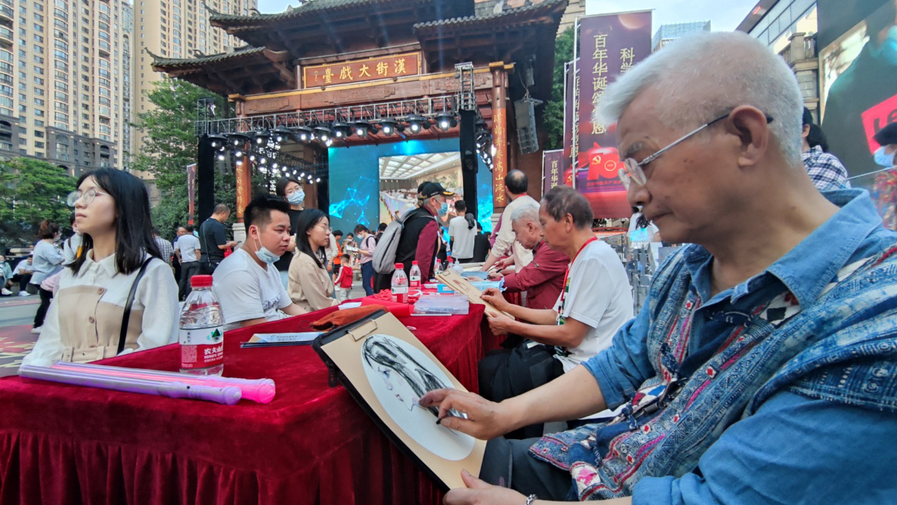 仪式后,嘉宾一同参观科普互动展区,与市民一起体验无人驾驶售货车;用专业天文望远镜遥望星空,听专家科普天文知识;与人工智能教育型机器人互动游戏……现场还有书法家现场挥毫,题写的建党百年献礼主题对联;有画家轻写细描,为观众作人像速写或漫画创作。
