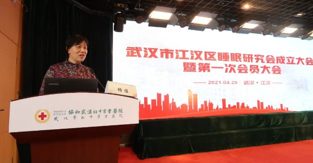 协和武汉红十字会医院党委书记杨俊致开幕式欢迎词,江汉区睡眠研究会是面向江汉区睡眠医学及相关专业的区级社会团体,前期,医院在区委区政府的支持下,打造了华中地区最大睡眠医学中心,如今建立江汉区睡眠研究会条件成熟,它将帮助区域临床医务人员了解最新的睡眠医学知识,对睡眠障碍人群进行系统诊疗,解决广大群众睡眠问题。她代表协和武汉红十字会医院预祝本次大会圆满成功!