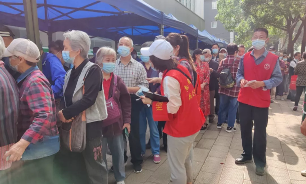 5月8日上午,社区安排的大巴车就已经等候在紫阳宾馆门口,老人们有序上车,来到第七医院接种疫苗,活动现场,检查门诊里人头攒动,大家都在接受医生的预检,是否符合受种对象。在经过测量血压、询问病史、排除接种禁忌之后,志愿者们始终在疫苗接种现场协调引导登记信息,维持秩序,提醒接种疫苗后的注意事项。大家细致入微的服务得到了在场的老年人一片赞扬声。社区老党员王京长拉着代书记的手激动地说:“出门才知道,有组织真好!这次活动,看到社区书记带领工作人员和志愿者跑前跑后,工作做的相当细致,看到其他社区的老人到处排队插队,更觉得我们社区的领导层带出了一个非常优秀的团队。为你们点赞!”