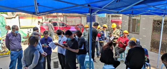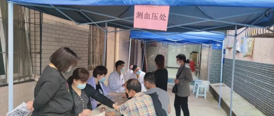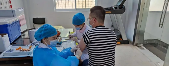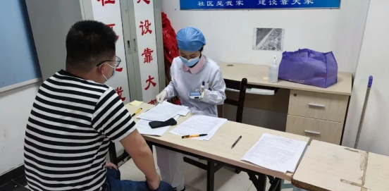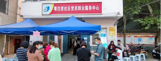 为有效防控疫情,粤汉里社区在做好常规疫情防控的同时,着力提高辖区居民新冠疫苗接种的覆盖率。2021年5月1日,粤汉里社区携手武昌医院在社区门口设置了一个社区新冠疫苗临时接种点,方便临近居民免费接种新冠疫苗。