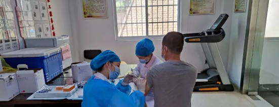 居民登记完成后由医生开单,随后到接种室接种,最后到留观区等待30分钟。